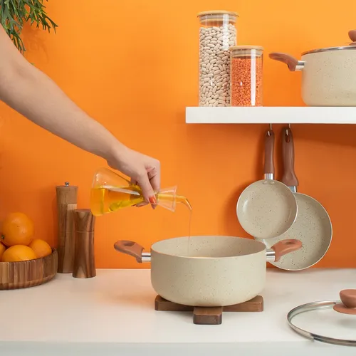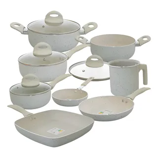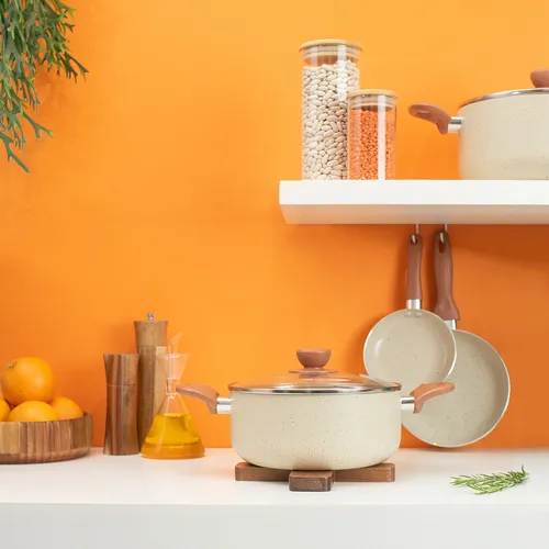 Jogo Com 8 Panelas Antiaderentes De Ceramica Bege - Oikos