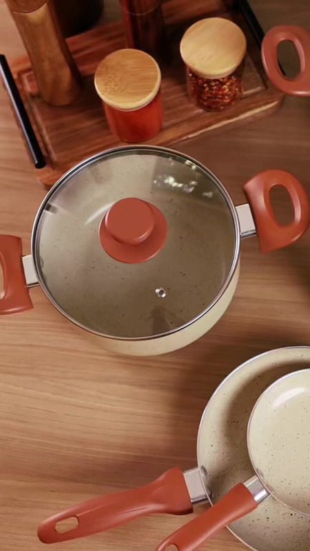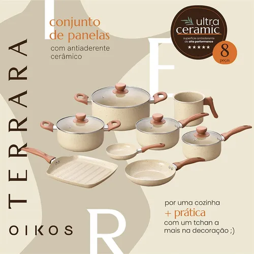 conheça o kit 8 panelas antiaderentes da coleção Terrara da Oikos!