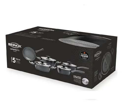 Jogo De Panelas Fogão Indução Brinox Ceramic Life Orion 5pçs Cor Preto