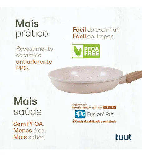 - Revestimento cerâmico antiaderente PPG Fusion Pro para maior durabilidade e facilidade na limpeza.