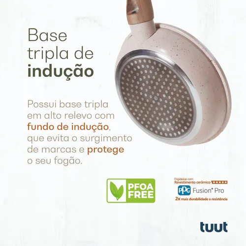 Base tripla de indução: garante melhor distribuição de calor, evita marcas no fogão e é compatível com todos os tipos de fogão, incluindo por indução.