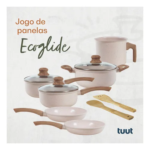 O Jogo de Panelas Tuut Ecoglide oferece a combinação perfeita entre funcionalidade, conforto e elegância. Composto por 8 peças essenciais para o dia a dia, é ideal para quem busca praticidade e eficiência ao cozinhar.
