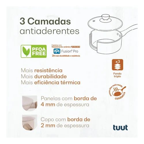 Jogo de Panelas 8 Peças Tuut Indução Ecoglide – Revestimento Cerâmico Antiaderente com Fundo Triplo